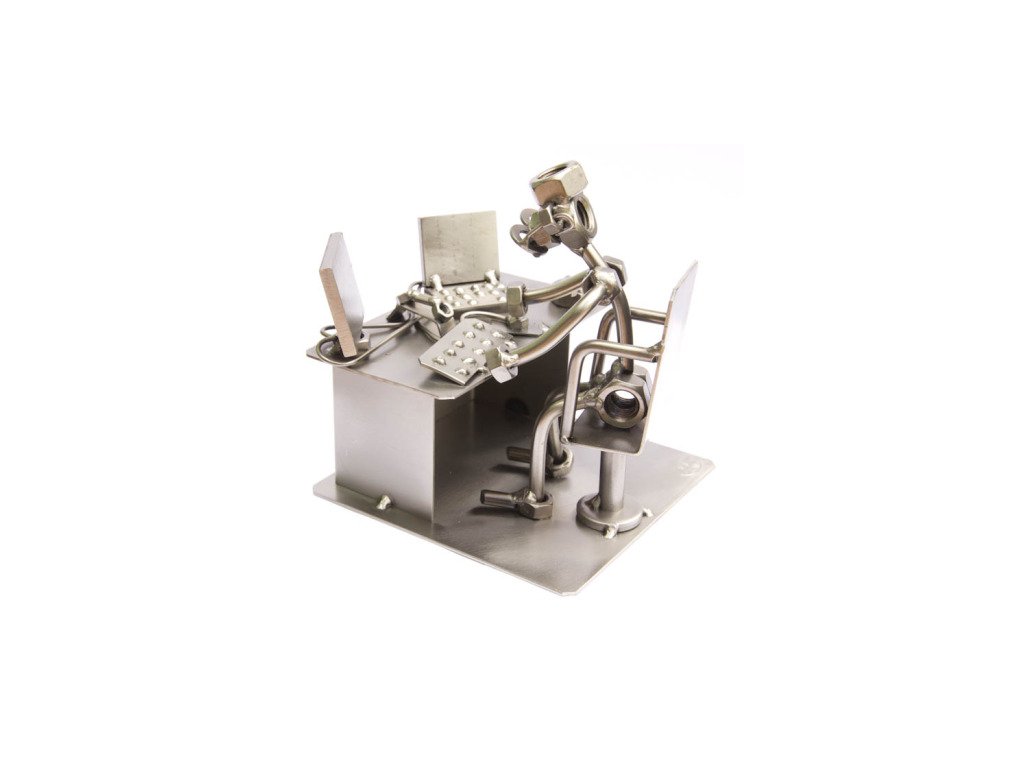 Kovová soška IT experta při práci. Originální soška pro všechny pracanty na počítačích.